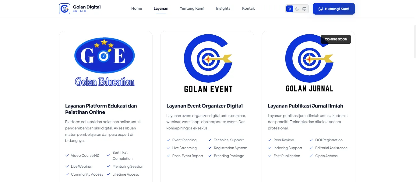 Website ini sudah terintegrasi dengan sistem post artikel/blog sehingga memudahkan Anda untuk membagikan update terbaru, portofolio proyek, hingga artikel edukasi yang dapat meningkatkan kepercayaan calon klien secara rutin.